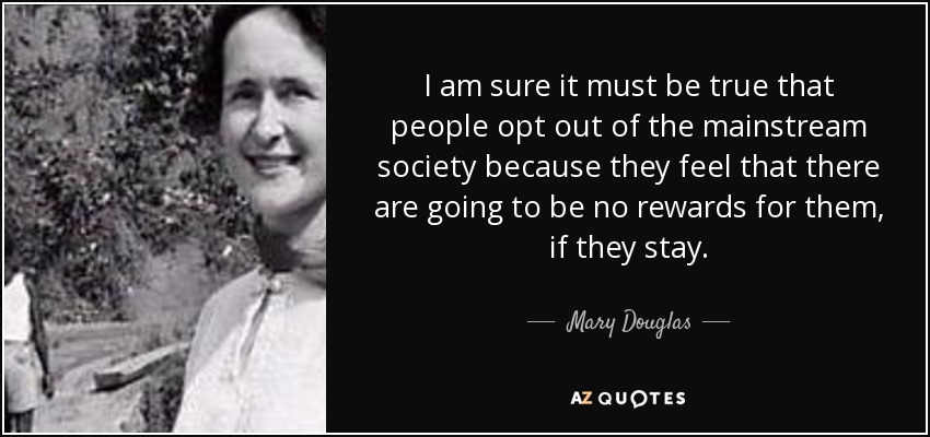 I am sure it must be true that people opt out of the mainstream society because they feel that there are going to be no rewards for them, if they stay.