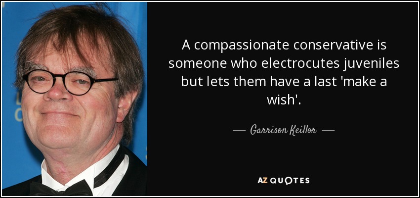 A compassionate conservative is someone who electrocutes juveniles but lets them have a last 'make a wish'.
