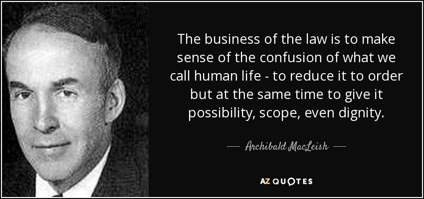 The business of the law is to make sense of the confusion of what we call human life - to reduce it to order but at the same time to give it possibility, scope, even dignity.