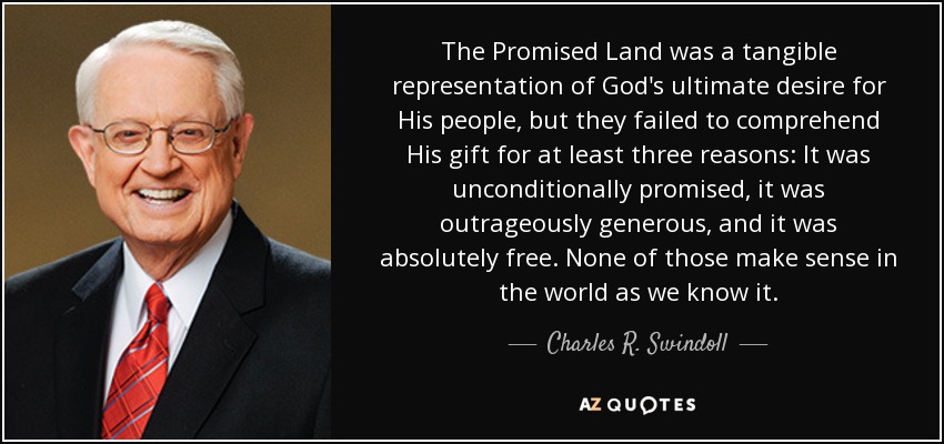 The Promised Land was a tangible representation of God's ultimate desire for His people, but they failed to comprehend His gift for at least three reasons: It was unconditionally promised, it was outrageously generous, and it was absolutely free. None of those make sense in the world as we know it.