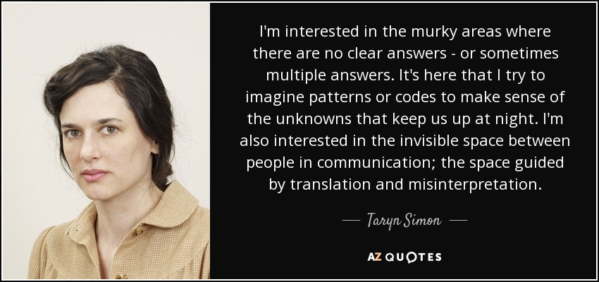 I'm interested in the murky areas where there are no clear answers - or sometimes multiple answers. It's here that I try to imagine patterns or codes to make sense of the unknowns that keep us up at night. I'm also interested in the invisible space between people in communication; the space guided by translation and misinterpretation.