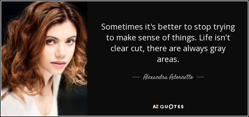 Sometimes it's better to stop trying to make sense of things. Life isn't clear cut, there are always gray areas.