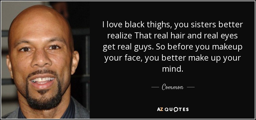 I love black thighs, you sisters better realize That real hair and real eyes get real guys. So before you makeup your face, you better make up your mind.
