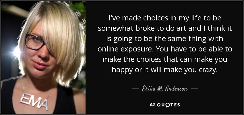 I've made choices in my life to be somewhat broke to do art and I think it is going to be the same thing with online exposure. You have to be able to make the choices that can make you happy or it will make you crazy.