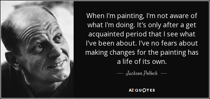 When I am in a painting, I'm not aware of what I'm doing. It is only after a sort of 'get acquainted' period that I see what I have been about. I have no fears about making changes, destroying the image, etc, because the painting has a life of its own. I try to let it come through. It is only when I lose contact with the painting that the result is a mess. Otherwise there is pure harmony, an easy give and take, and the painting comes out well.