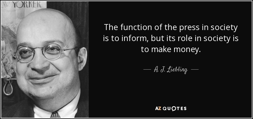 The function of the press in society is to inform, but its role in society is to make money.