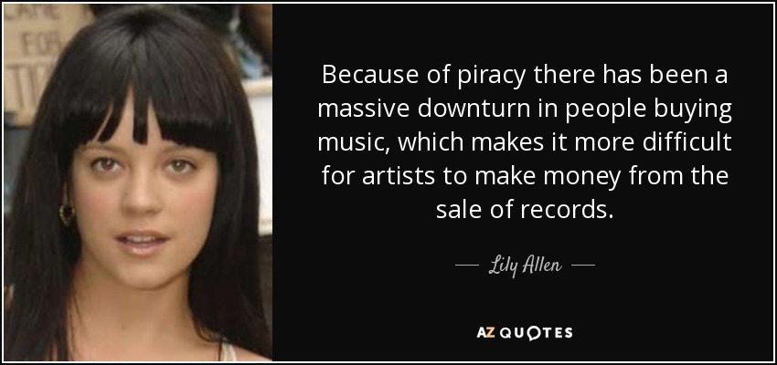 Because of piracy there has been a massive downturn in people buying music, which makes it more difficult for artists to make money from the sale of records.
