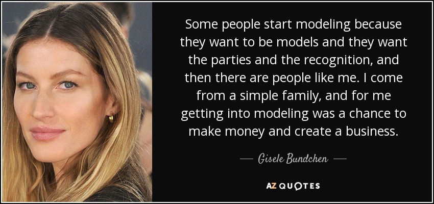 Some people start modeling because they want to be models and they want the parties and the recognition, and then there are people like me. I come from a simple family, and for me getting into modeling was a chance to make money and create a business.