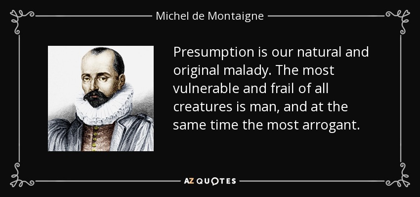 Presumption is our natural and original malady. The most vulnerable and frail of all creatures is man, and at the same time the most arrogant.
