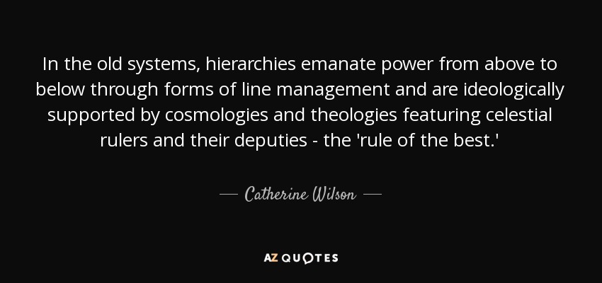In the old systems, hierarchies emanate power from above to below through forms of line management and are ideologically supported by cosmologies and theologies featuring celestial rulers and their deputies - the 'rule of the best.'