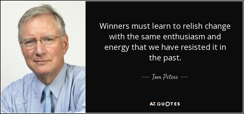 Winners must learn to relish change with the same enthusiasm and energy that we have resisted it in the past.