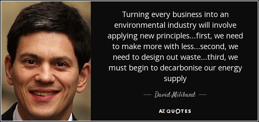 Turning every business into an environmental industry will involve applying new principles...first, we need to make more with less...second, we need to design out waste...third, we must begin to decarbonise our energy supply