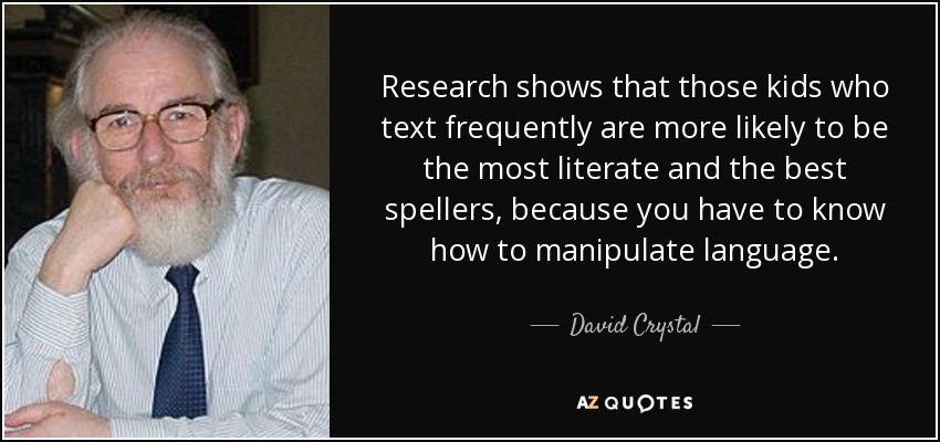 Research shows that those kids who text frequently are more likely to be the most literate and the best spellers, because you have to know how to manipulate language.