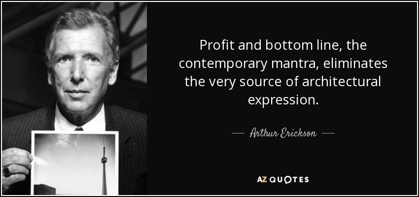 Profit and bottom line, the contemporary mantra, eliminates the very source of architectural expression.