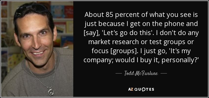 About 85 percent of what you see is just because I get on the phone and [say], 'Let's go do this'. I don't do any market research or test groups or focus [groups]. I just go, 'It's my company; would I buy it, personally?'