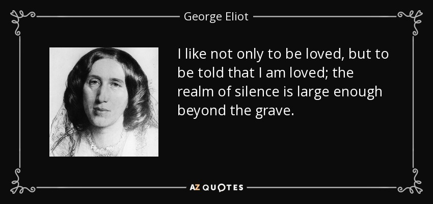 I like not only to be loved, but to be told that I am loved; the realm of silence is large enough beyond the grave.
