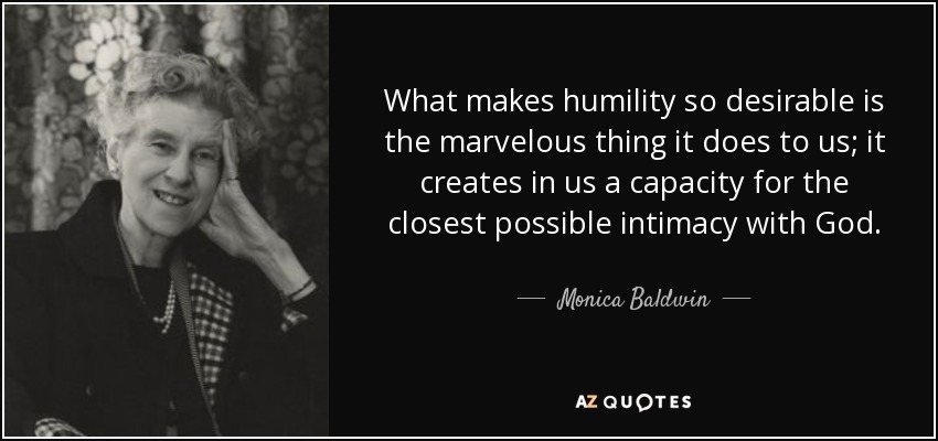 What makes humility so desirable is the marvelous thing it does to us; it creates in us a capacity for the closest possible intimacy with God.