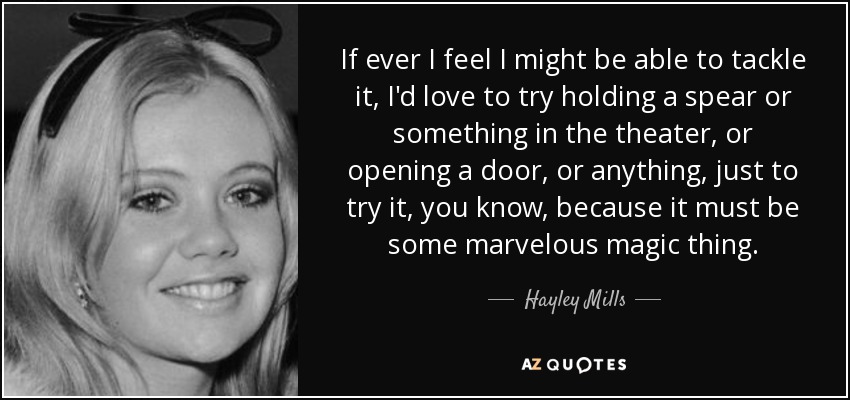 If ever I feel I might be able to tackle it, I'd love to try holding a spear or something in the theater, or opening a door, or anything, just to try it, you know, because it must be some marvelous magic thing.