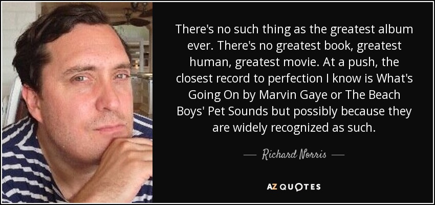 There's no such thing as the greatest album ever. There's no greatest book, greatest human, greatest movie. At a push, the closest record to perfection I know is What's Going On by Marvin Gaye or The Beach Boys' Pet Sounds but possibly because they are widely recognized as such.