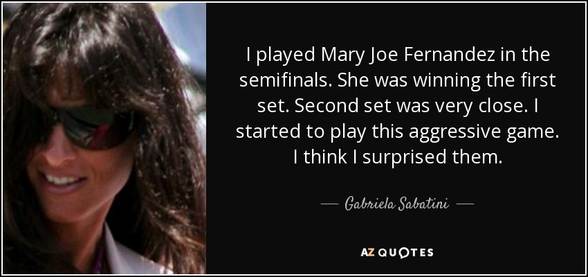 I played Mary Joe Fernandez in the semifinals. She was winning the first set. Second set was very close. I started to play this aggressive game. I think I surprised them.