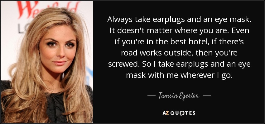 Always take earplugs and an eye mask. It doesn't matter where you are. Even if you're in the best hotel, if there's road works outside, then you're screwed. So I take earplugs and an eye mask with me wherever I go.