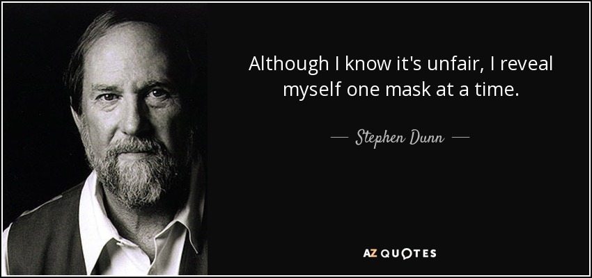 Wearing a mask wears you out. Faking it is fatiguing. The most exhausting activity is pretending to be what you know you aren't.