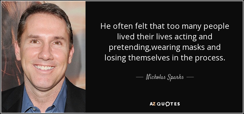 He often felt that too many people lived their lives acting and pretending,wearing masks and losing themselves in the process.