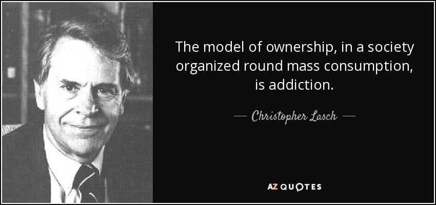 The model of ownership, in a society organized round mass consumption, is addiction.
