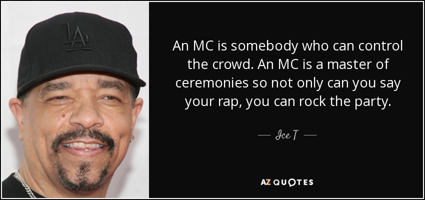 An MC is somebody who can control the crowd. An MC is a master of ceremonies so not only can you say your rap, you can rock the party.