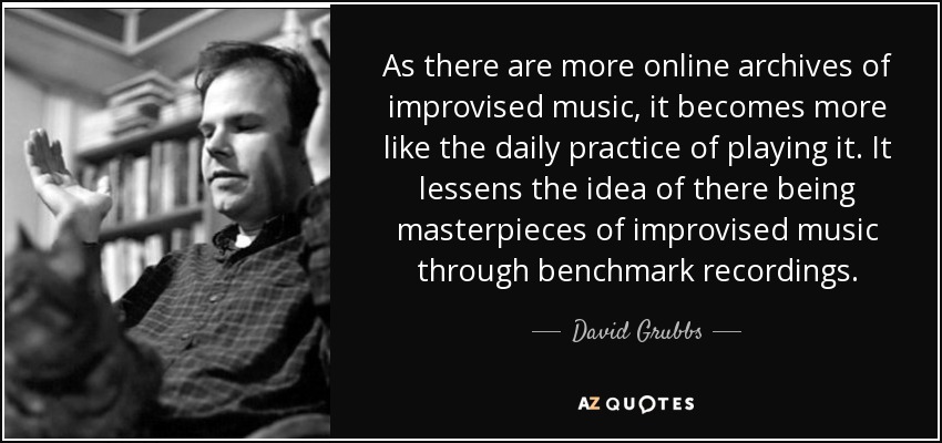 As there are more online archives of improvised music, it becomes more like the daily practice of playing it. It lessens the idea of there being masterpieces of improvised music through benchmark recordings.