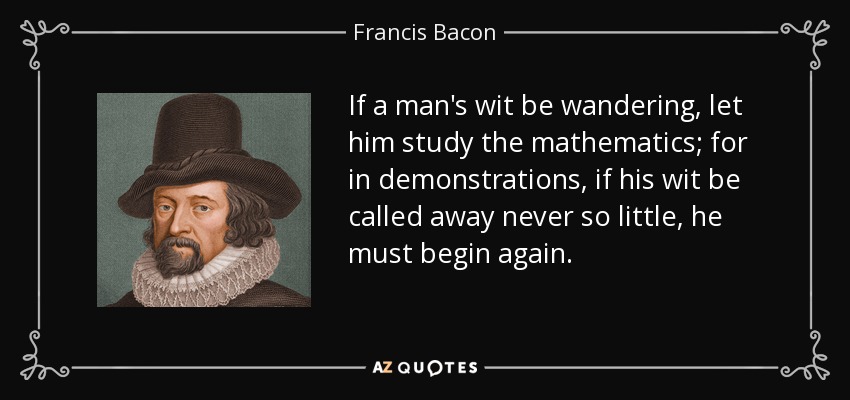 If a man's wit be wandering, let him study the mathematics; for in demonstrations, if his wit be called away never so little, he must begin again.