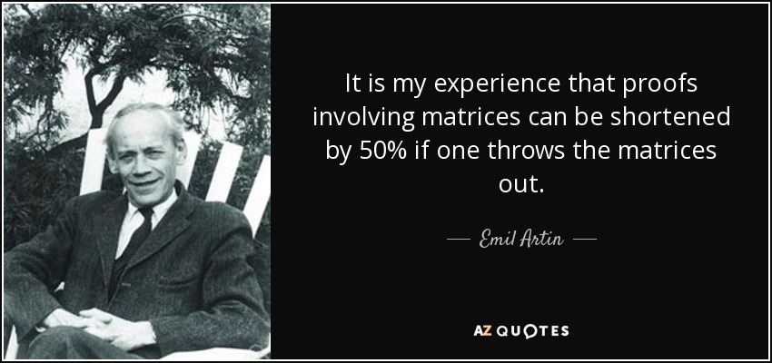 It is my experience that proofs involving matrices can be shortened by 50% if one throws the matrices out.
