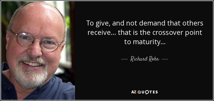 To give, and not demand that others receive . . . that is the crossover point to maturity. . .