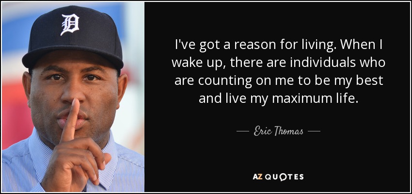 I've got a reason for living. When I wake up, there are individuals who are counting on me to be my best and live my maximum life.