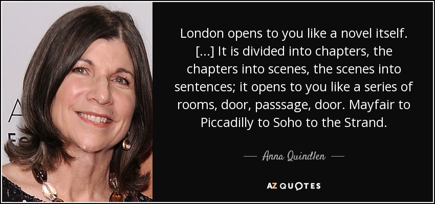 London opens to you like a novel itself. [...] It is divided into chapters, the chapters into scenes, the scenes into sentences; it opens to you like a series of rooms, door, passsage, door. Mayfair to Piccadilly to Soho to the Strand.