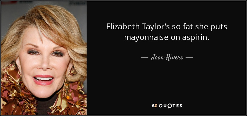 Elizabeth Taylor's so fat she puts mayonnaise on aspirin.