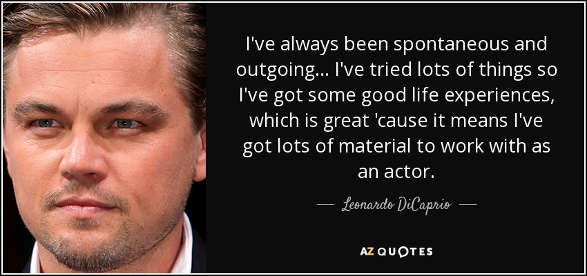 I've always been spontaneous and outgoing... I've tried lots of things so I've got some good life experiences, which is great 'cause it means I've got lots of material to work with as an actor.