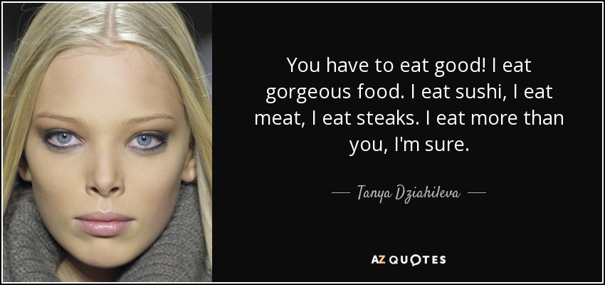 You have to eat good! I eat gorgeous food. I eat sushi, I eat meat, I eat steaks. I eat more than you, I'm sure.