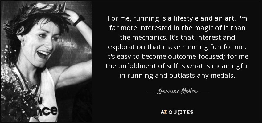 For me, running is a lifestyle and an art. I'm far more interested in the magic of it than the mechanics. It's that interest and exploration that make running fun for me. It's easy to become outcome-focused; for me the unfoldment of self is what is meaningful in running and outlasts any medals.