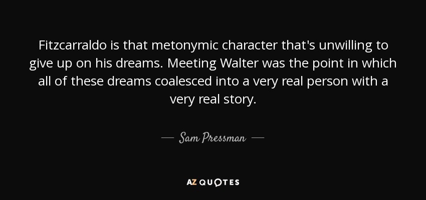 Fitzcarraldo is that metonymic character that's unwilling to give up on his dreams. Meeting Walter was the point in which all of these dreams coalesced into a very real person with a very real story.