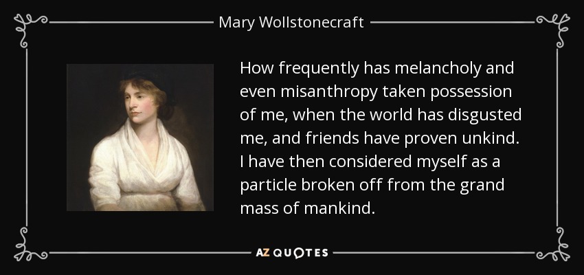 How frequently has melancholy and even misanthropy taken possession of me, when the world has disgusted me, and friends have proven unkind. I have then considered myself as a particle broken off from the grand mass of mankind.