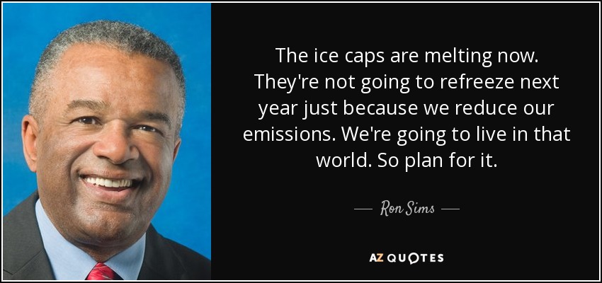 The ice caps are melting now. They're not going to refreeze next year just because we reduce our emissions. We're going to live in that world. So plan for it.