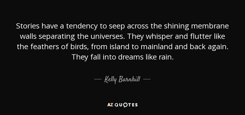 Stories have a tendency to seep across the shining membrane walls separating the universes. They whisper and flutter like the feathers of birds, from island to mainland and back again. They fall into dreams like rain.