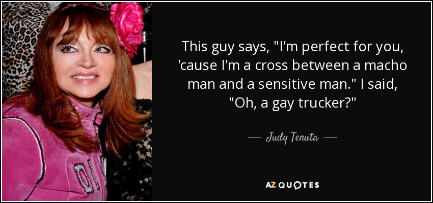 This guy says, "I'm perfect for you, 'cause I'm a cross between a macho man and a sensitive man." I said, "Oh, a gay trucker?"