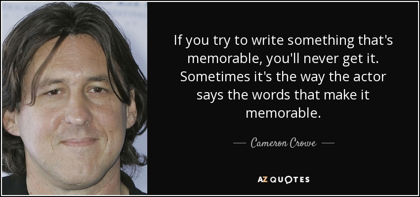 If you try to write something that's memorable, you'll never get it. Sometimes it's the way the actor says the words that make it memorable.