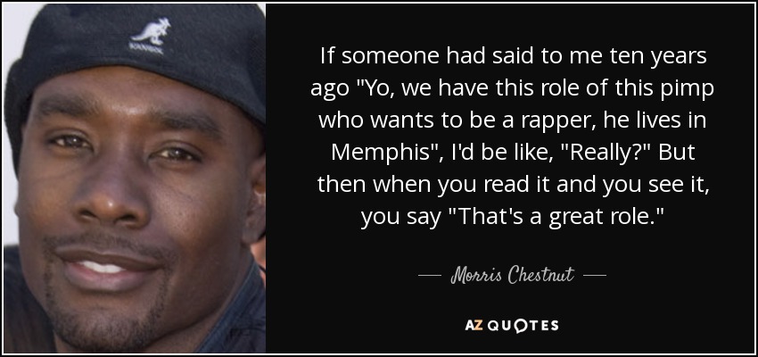If someone had said to me ten years ago "Yo, we have this role of this pimp who wants to be a rapper, he lives in Memphis", I'd be like, "Really?" But then when you read it and you see it, you say "That's a great role."