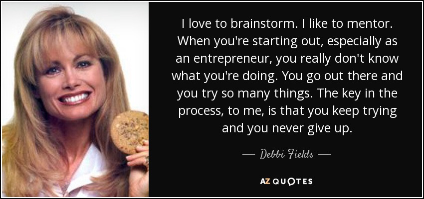 I love to brainstorm. I like to mentor. When you're starting out, especially as an entrepreneur, you really don't know what you're doing. You go out there and you try so many things. The key in the process, to me, is that you keep trying and you never give up.