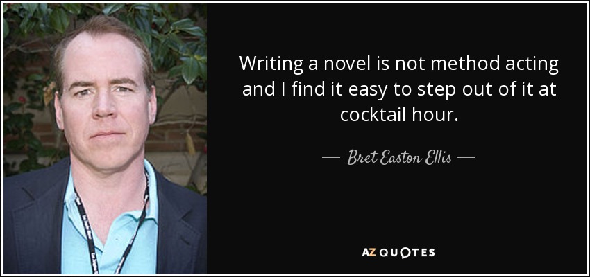 Writing a novel is not method acting and I find it easy to step out of it at cocktail hour.