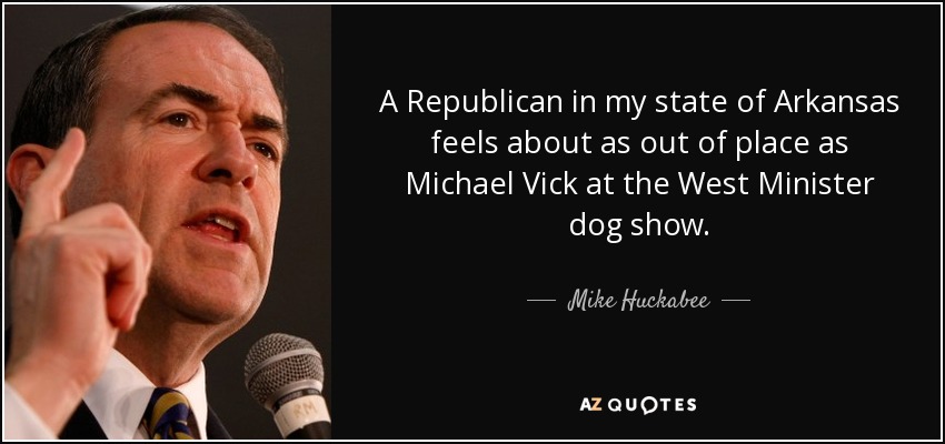 A Republican in my state of Arkansas feels about as out of place as Michael Vick at the West Minister dog show.