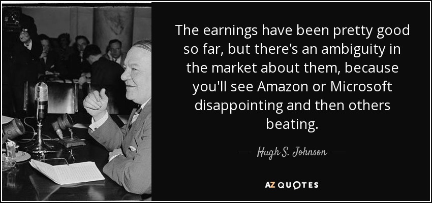 The earnings have been pretty good so far, but there's an ambiguity in the market about them, because you'll see Amazon or Microsoft disappointing and then others beating.